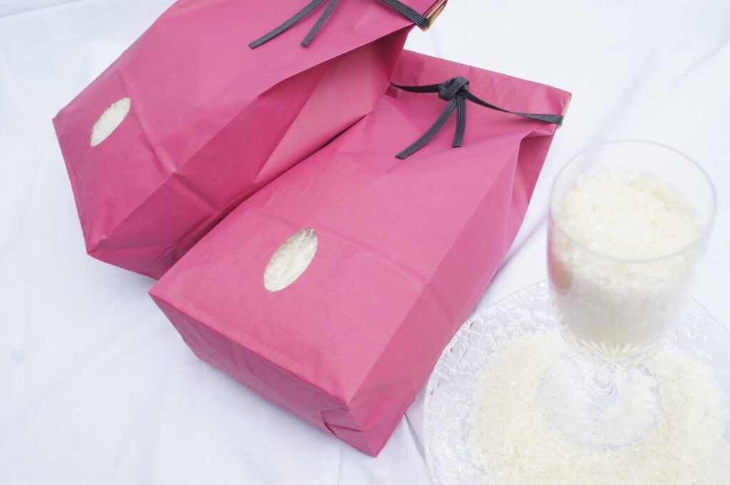 2kg入りの米袋はちょっと贅沢な日のご飯に、手土産にとお使いいただいております。